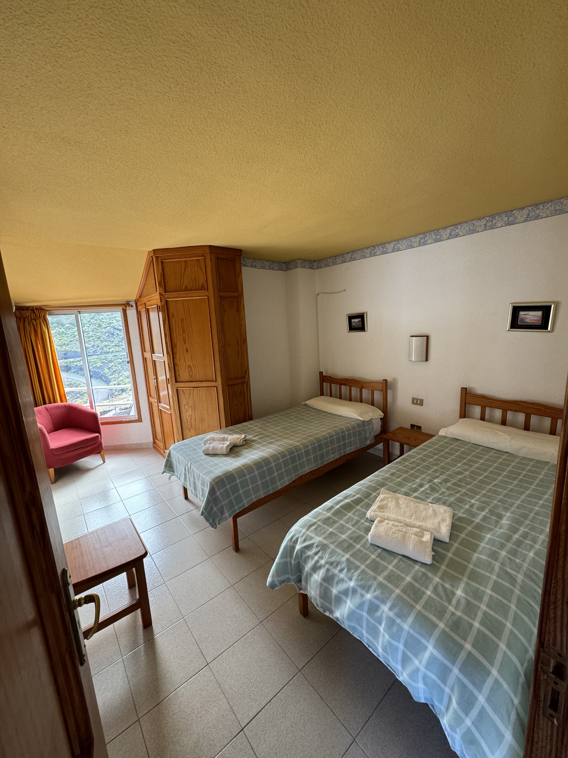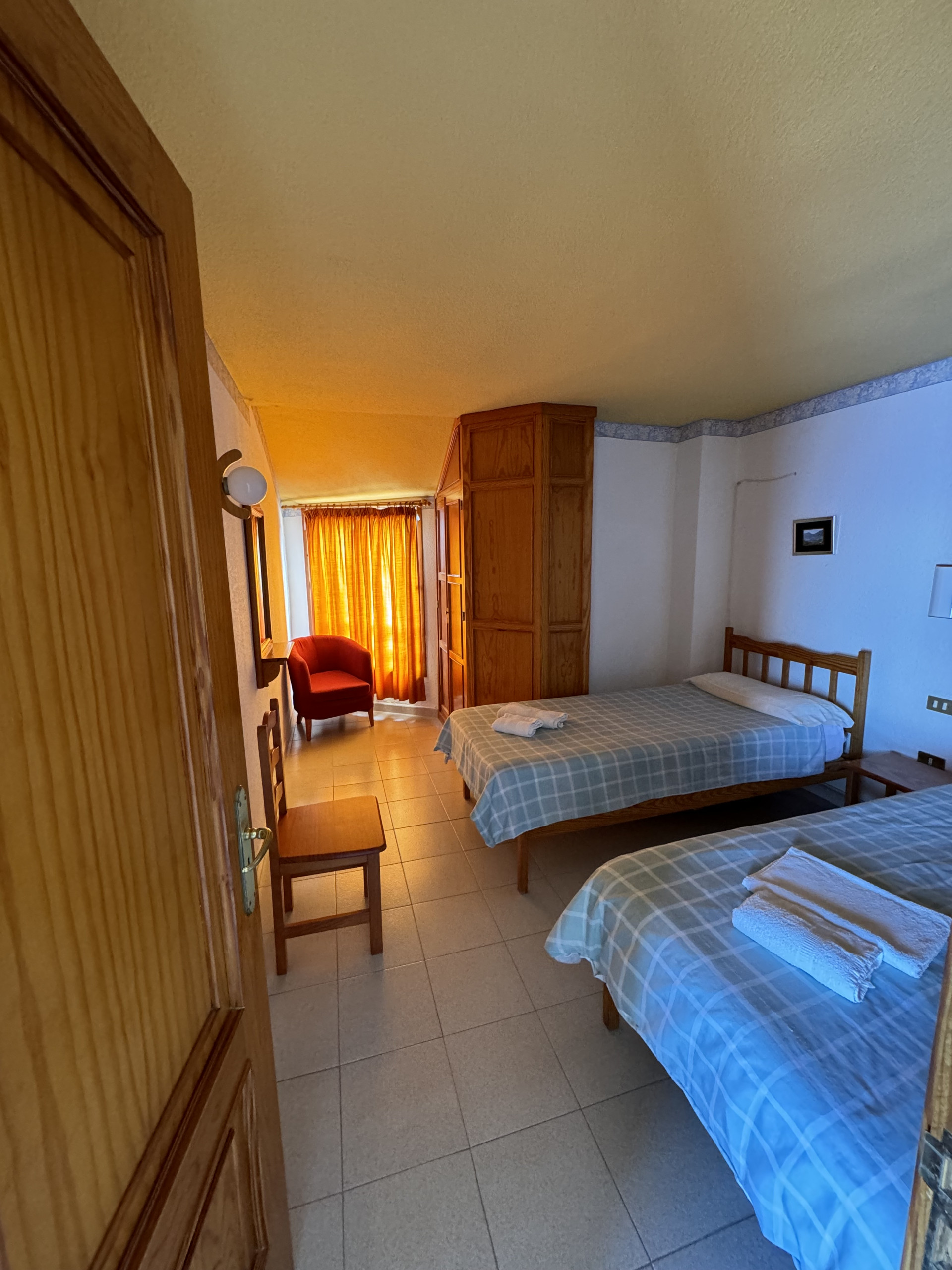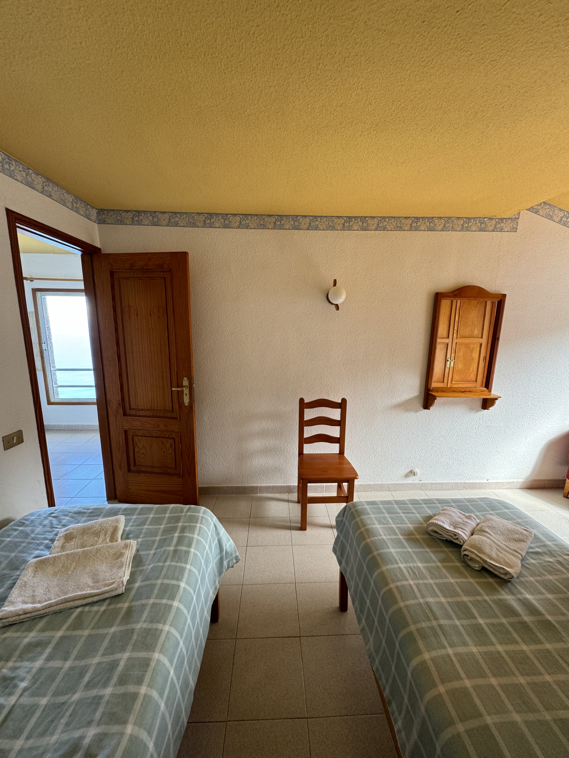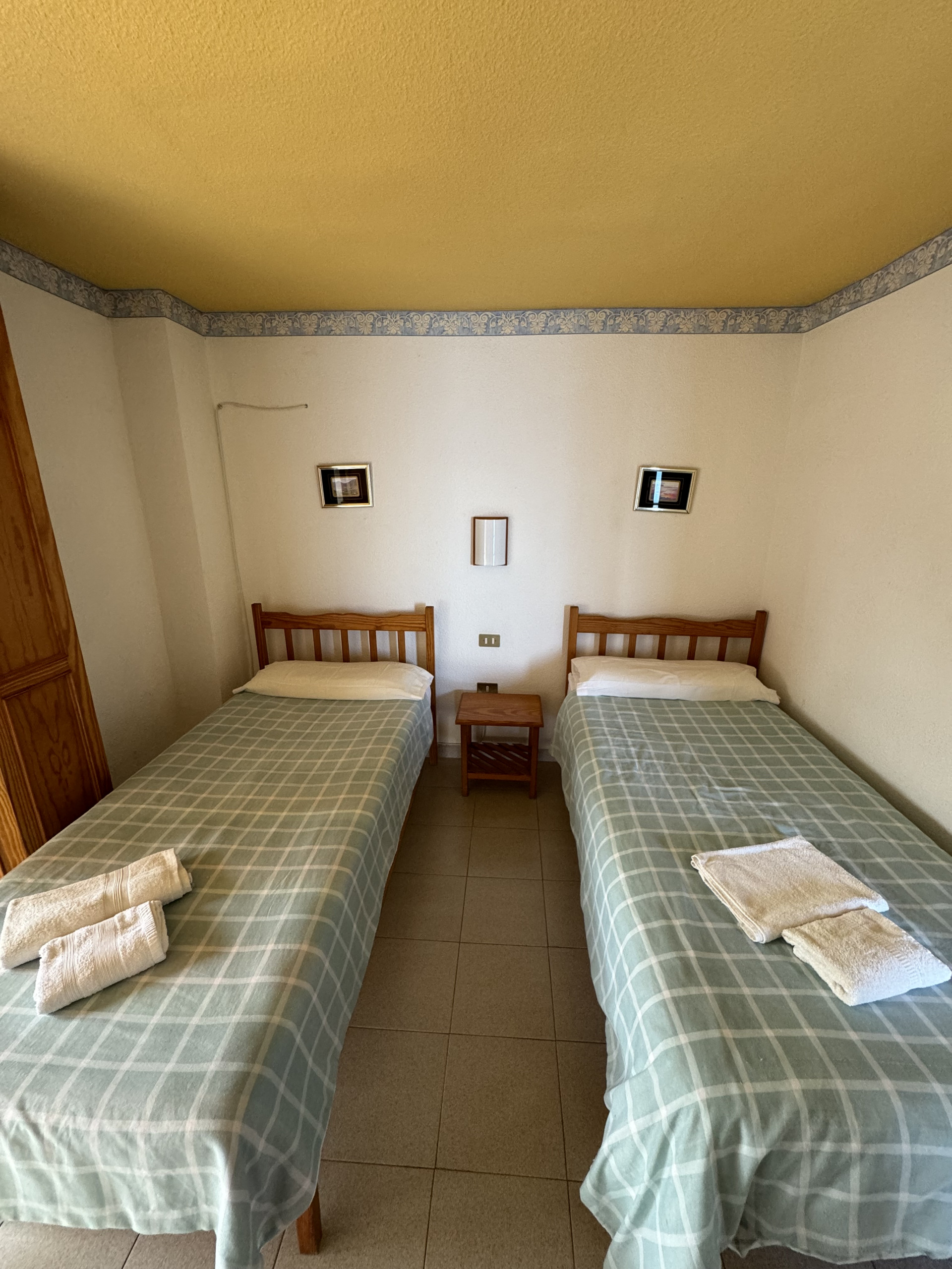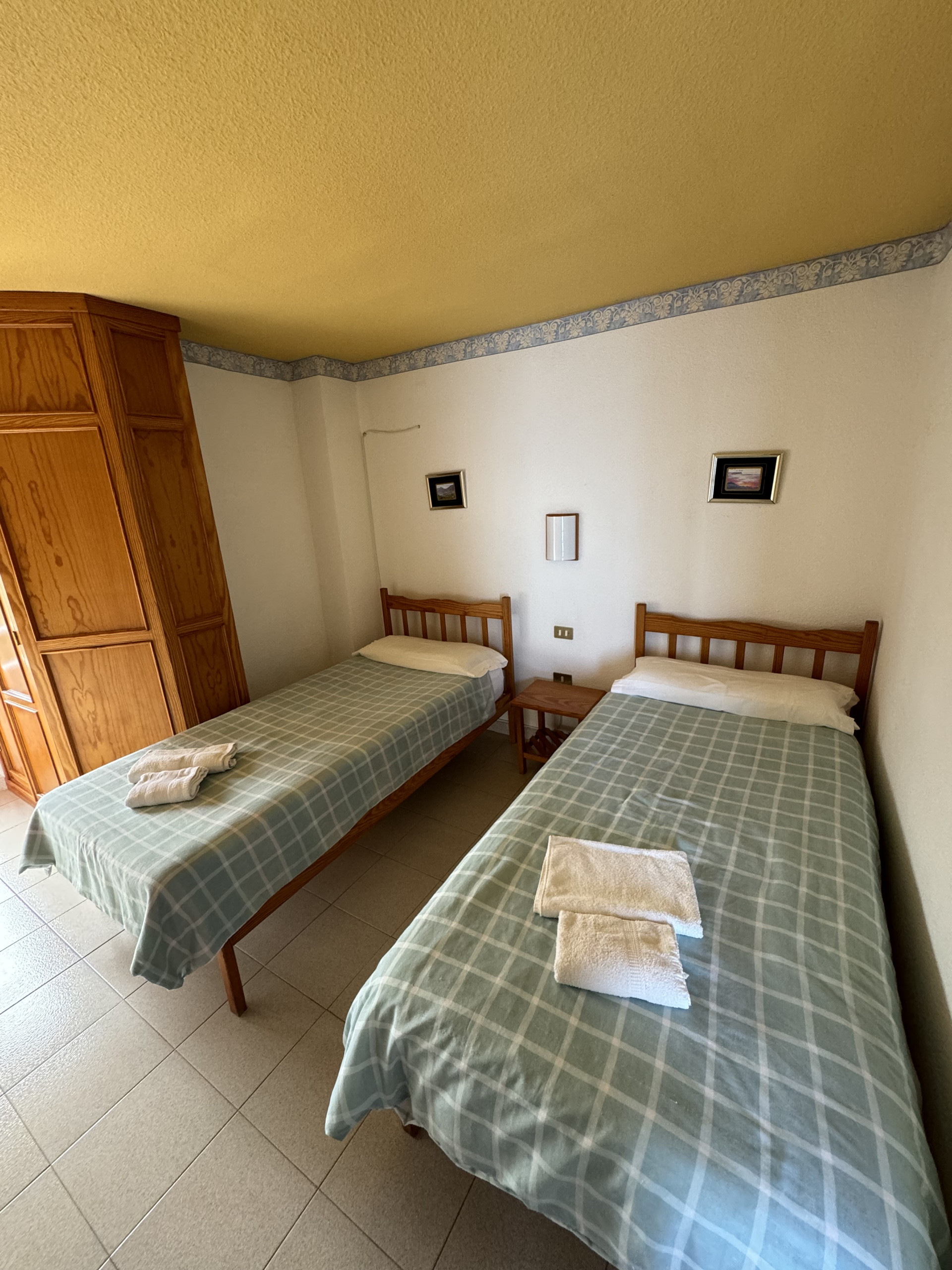 This apartment is located on the first floor of our property and features two single beds, a small fully equipped kitchen, and a private bathroom, all within a cozy and comfortable atmosphere.