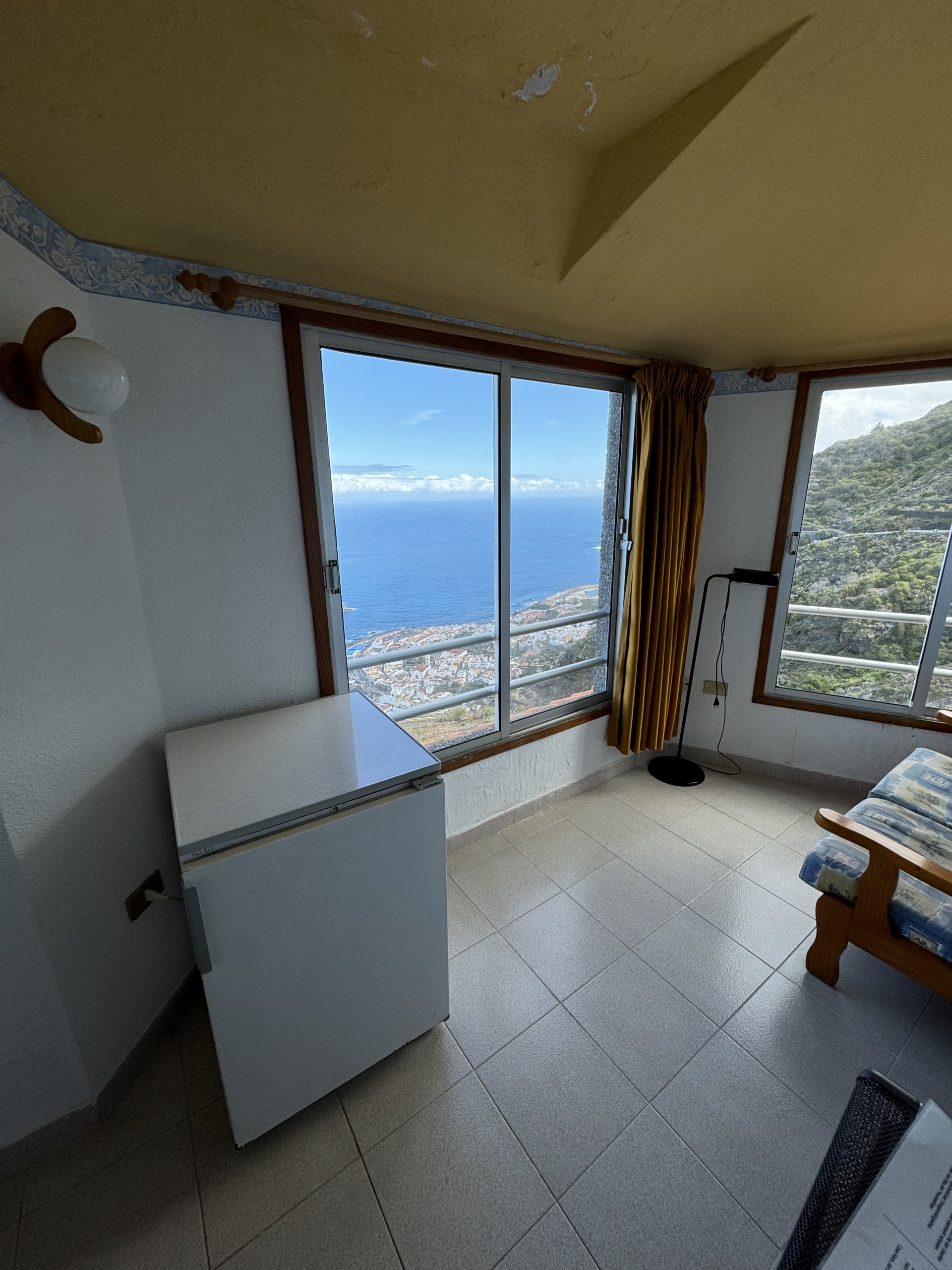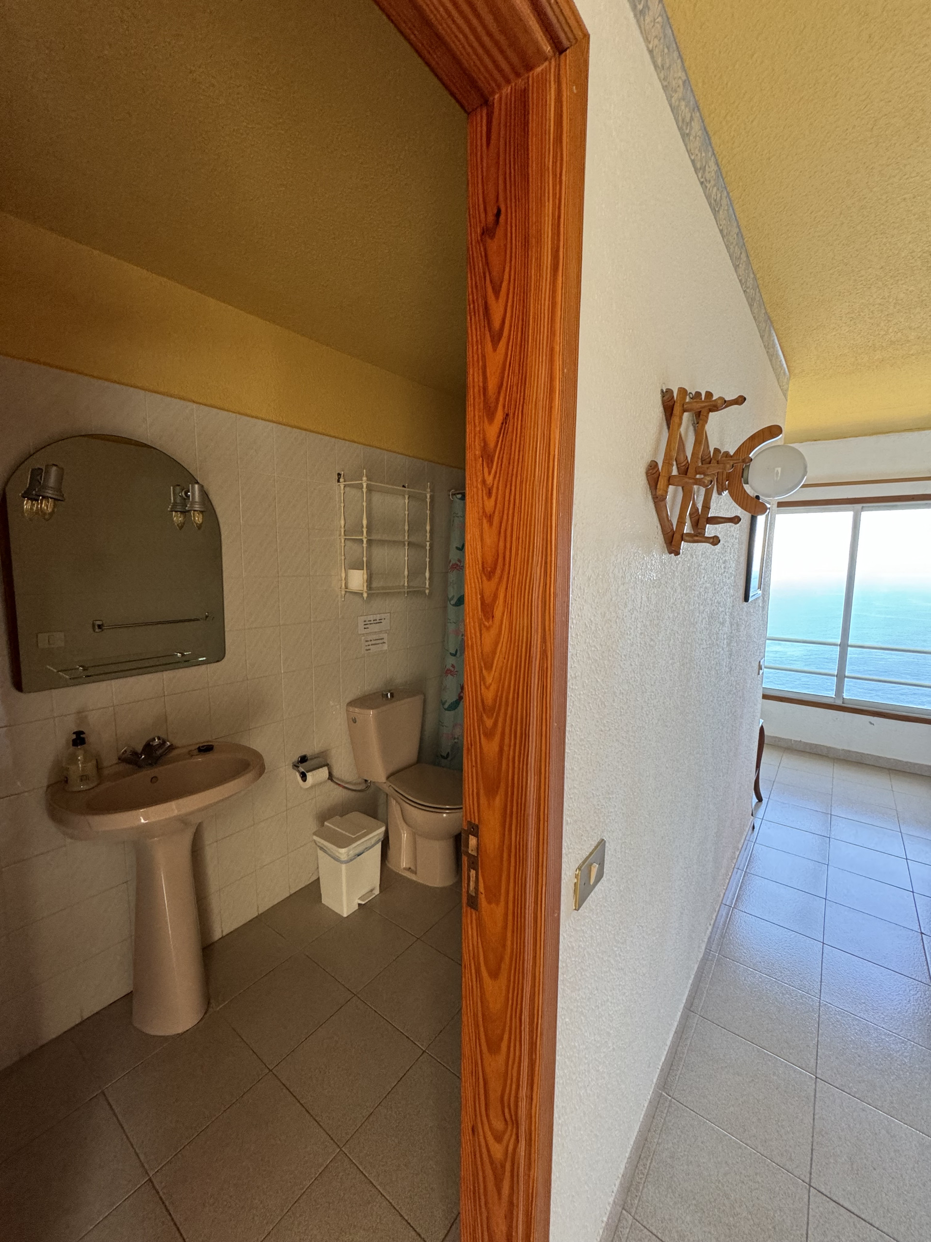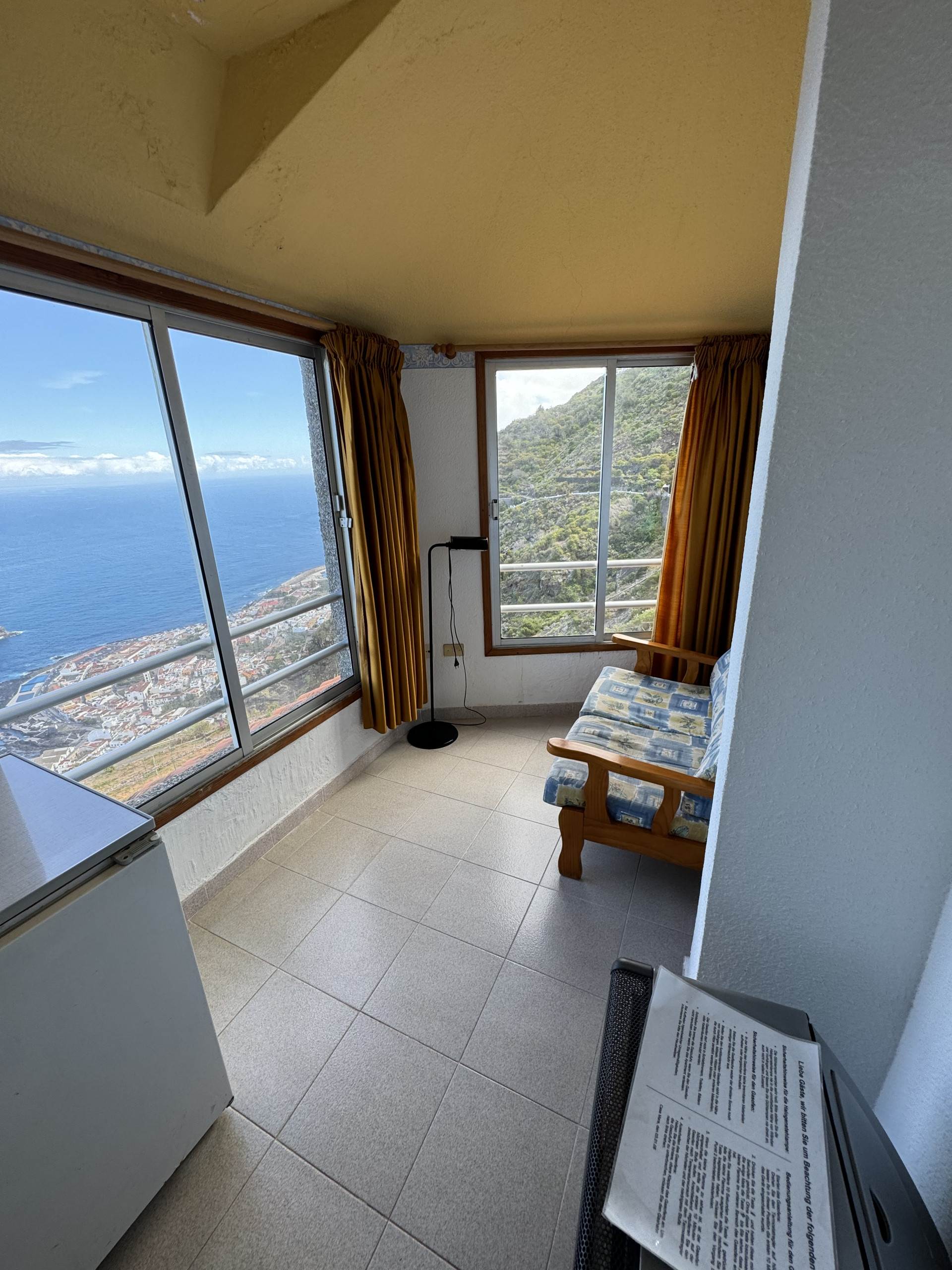 Enjoy the peace and beauty of the sea views in our double apartment with a side view of the ocean and the mountains. The panoramic windows offer a wonderful view of the mountains and the coastline to the west, allowing you to relax in a natural and serene setting.