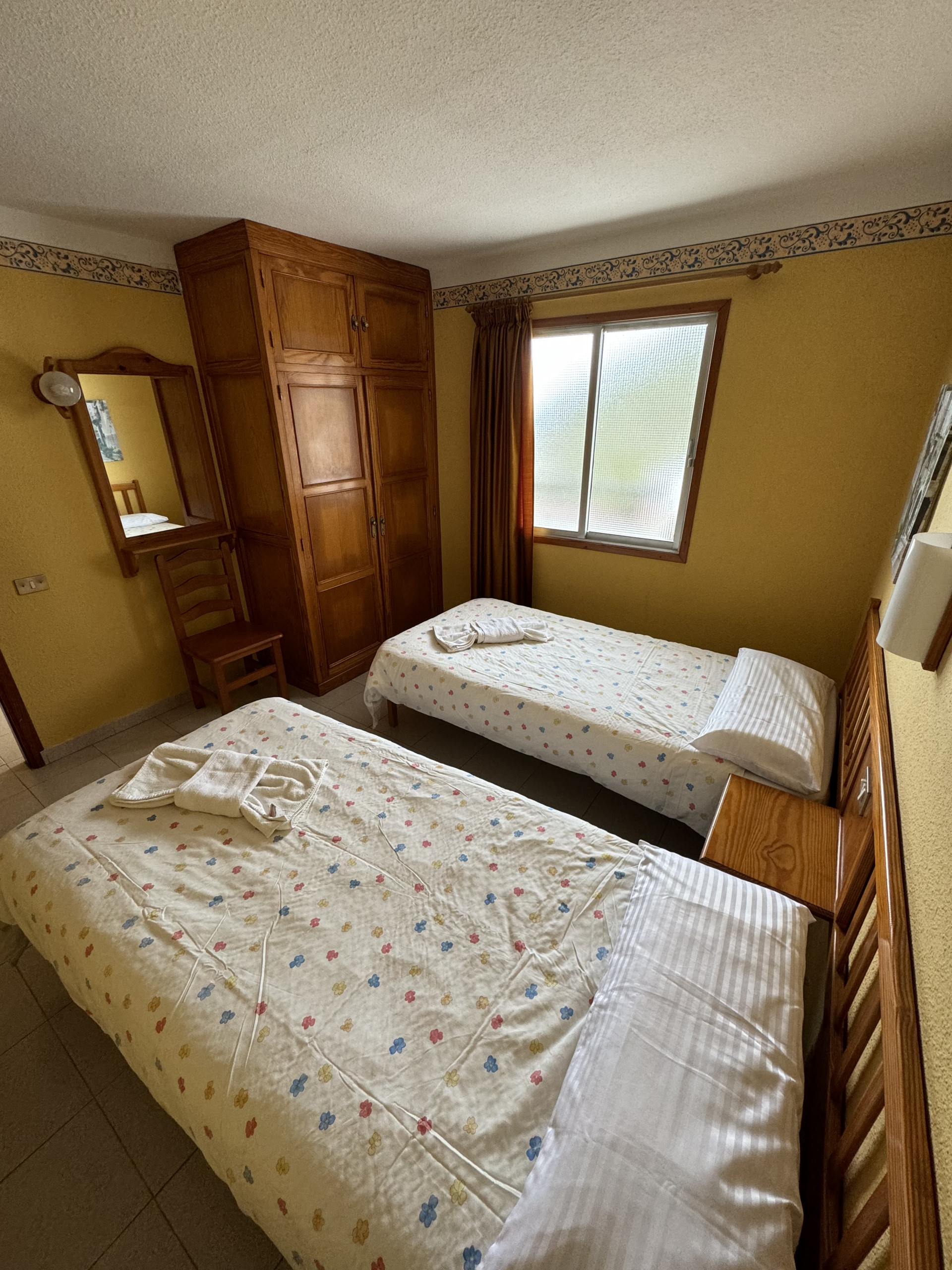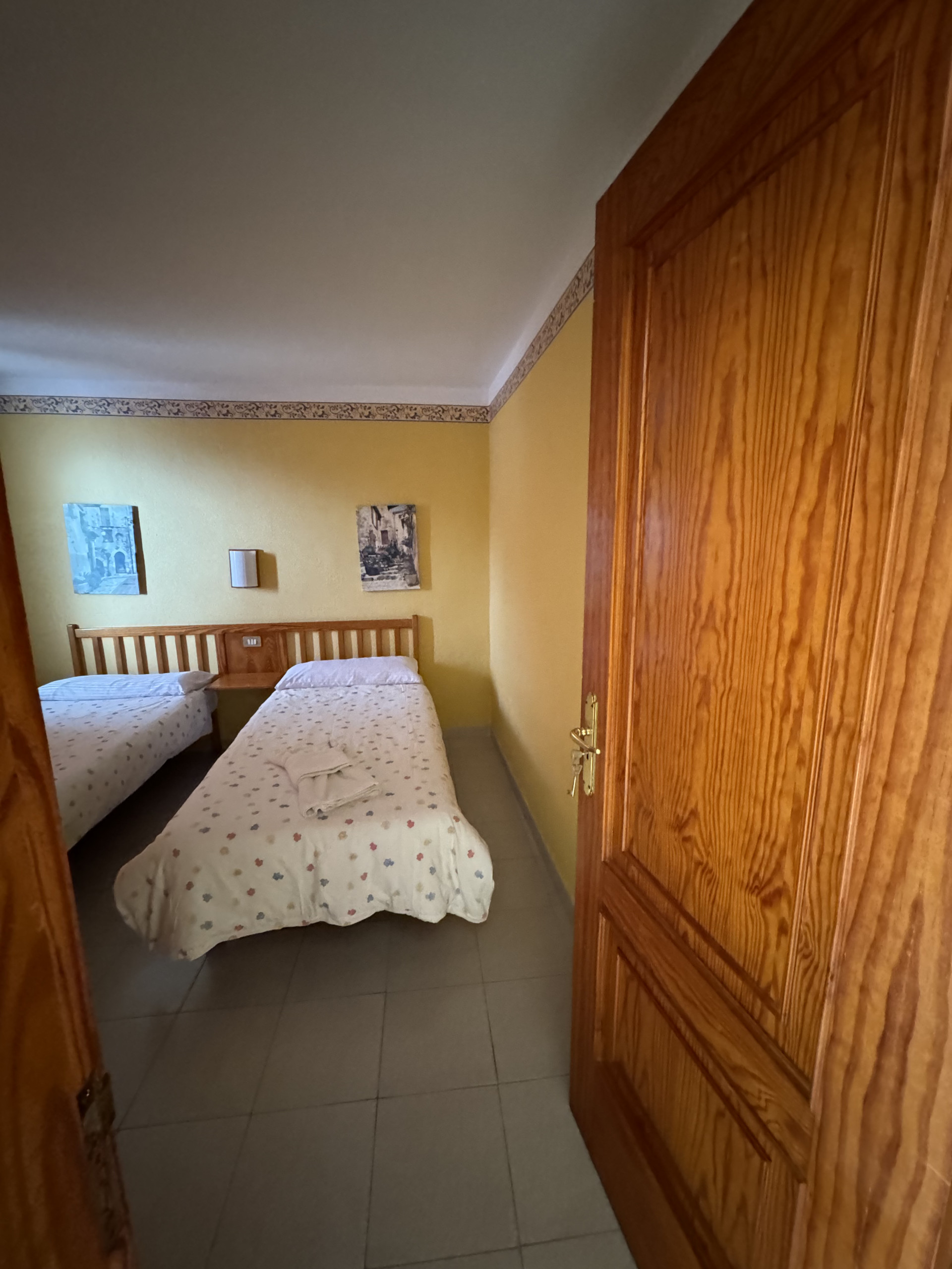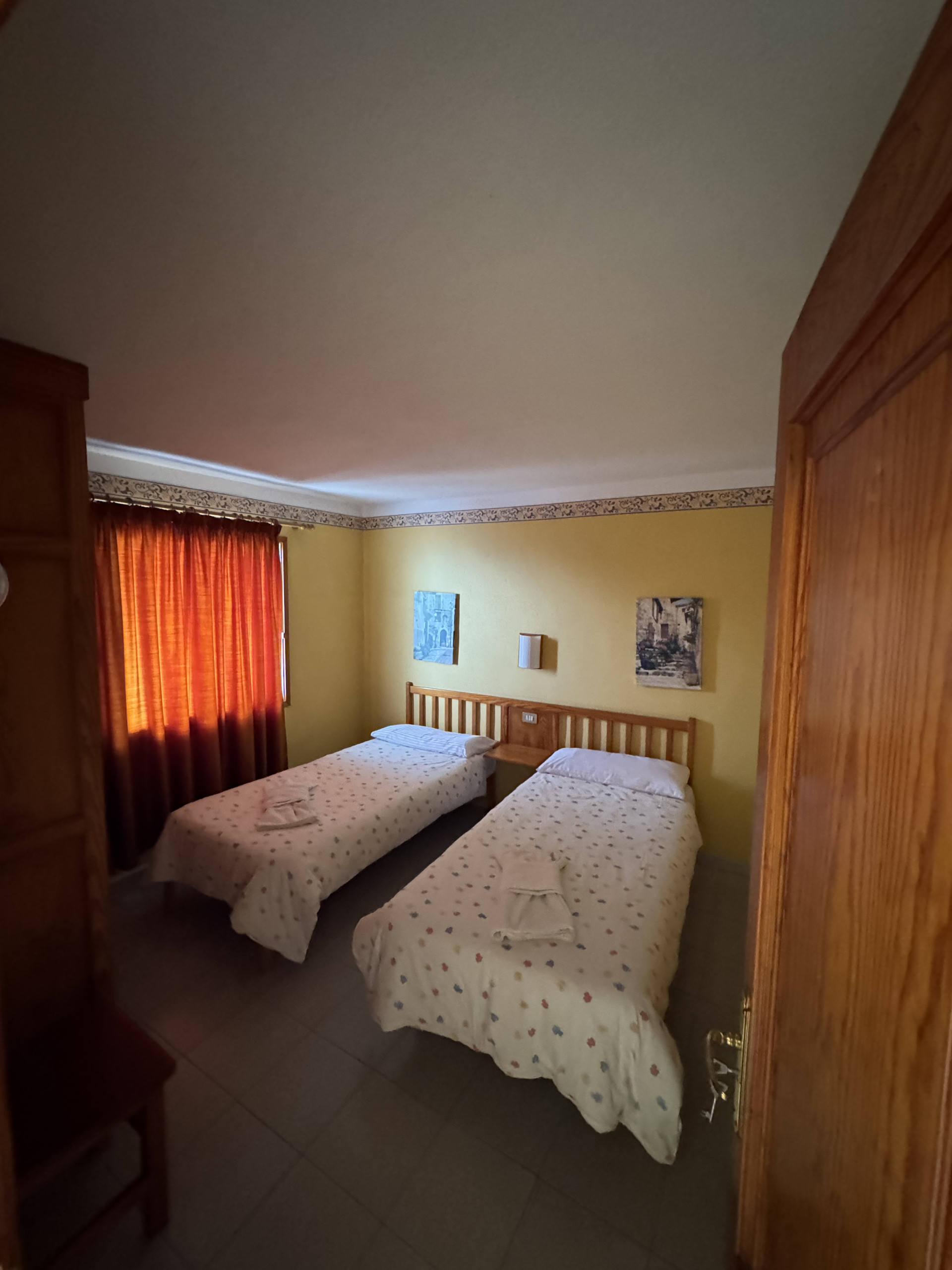 This apartment is located on the first floor of our property and features two single beds, a small fully equipped kitchen, and a private bathroom, all within a cozy and comfortable atmosphere.