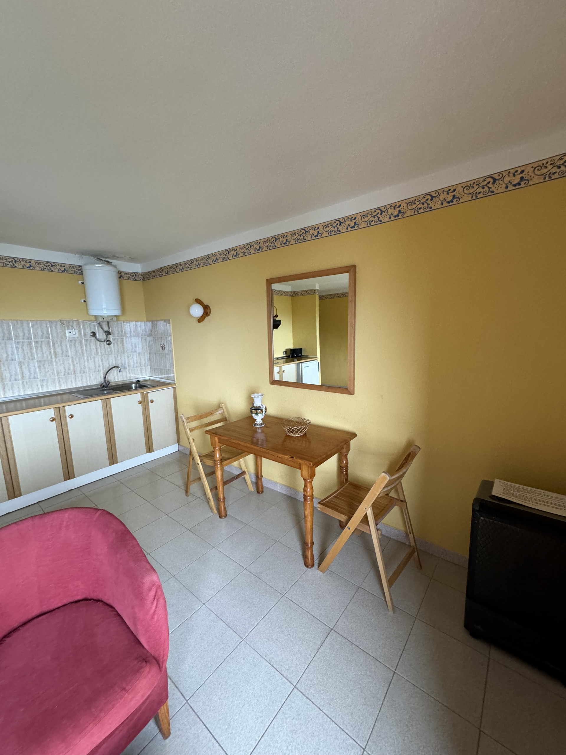 Escape the hustle and bustle and enjoy tranquility in our Studio. A small yet cozy apartment with two single beds and everything you need for your comfort: a practical compact kitchen, a private bathroom, and a relaxing atmosphere. It is located on the first floor of our building. The furniture and décor create a comforting space, ideal for those seeking a simple yet charming stay. A perfect place for those who appreciate functionality and authenticity—ideal for unwinding while still feeling at home. Prices are subject to change depending on the season and availability, and will be updated when selecting the dates for your stay.