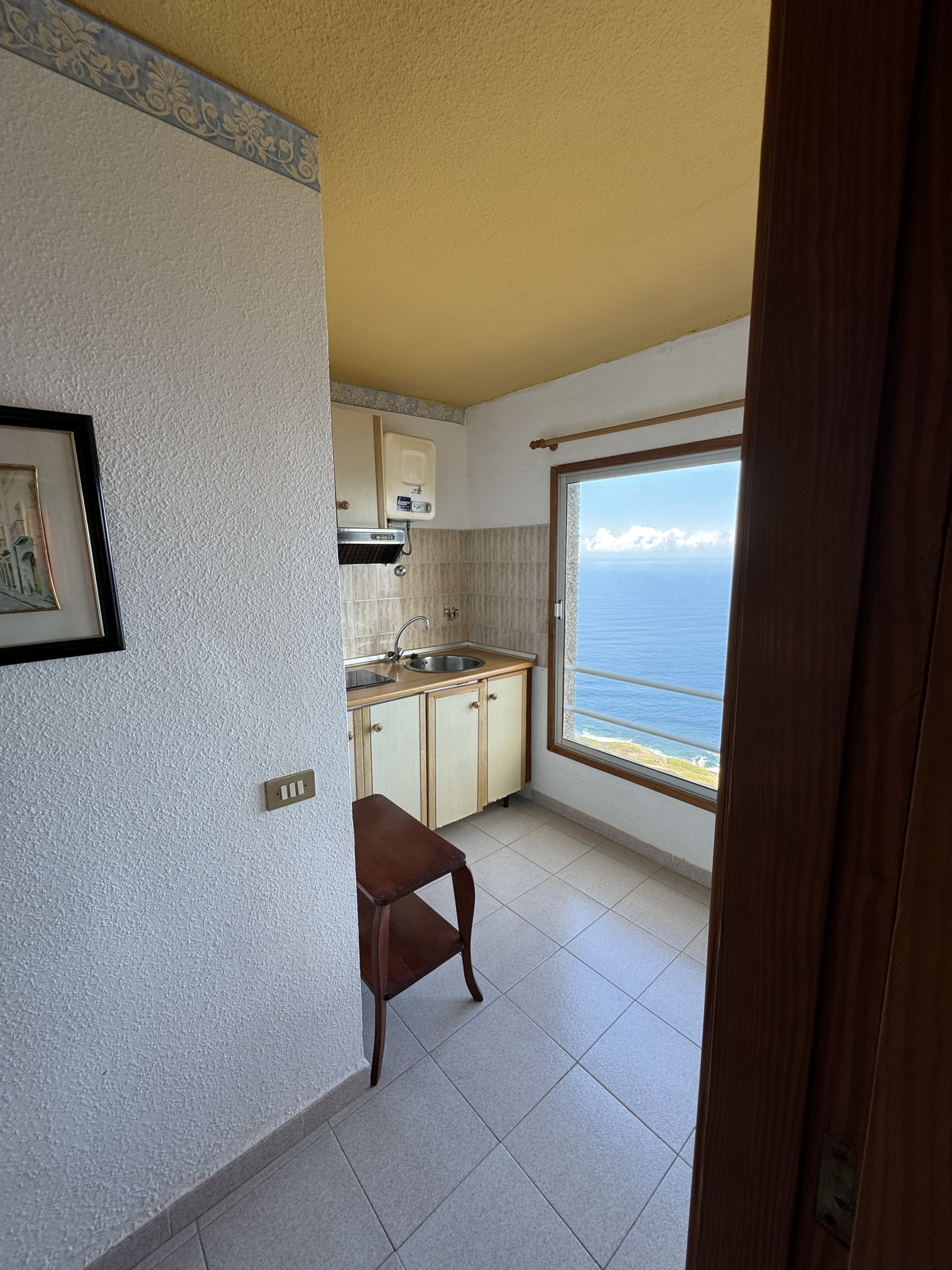 Enjoy the peace and beauty of the sea views in our double apartment with a side view of the ocean and the mountains. The panoramic windows offer a wonderful view of the mountains and the west-facing coastline, allowing you to relax in a natural and serene setting.
