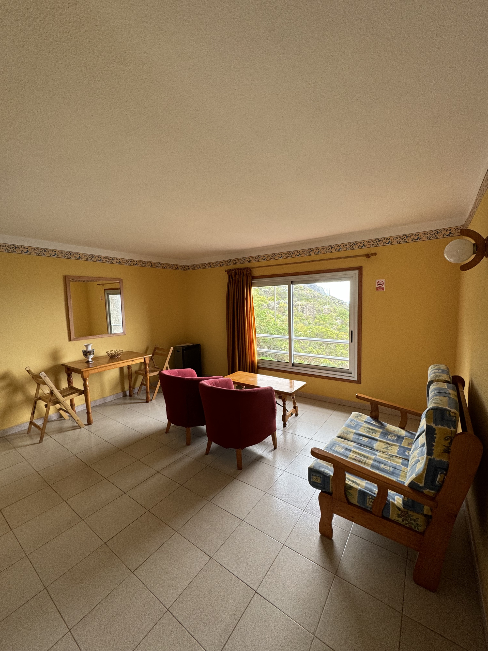 Enjoy the peace and beauty of the sea views in our double apartment with a side view of the ocean and the mountains. The panoramic windows offer a wonderful view of the mountains and the coastline to the west, allowing you to relax in a natural and serene setting.