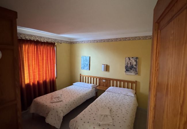 This apartment is located on the ground floor of our property and features two single beds, a small equipped kitchen, and a private bathroom, all within a cozy and comfortable atmosphere.