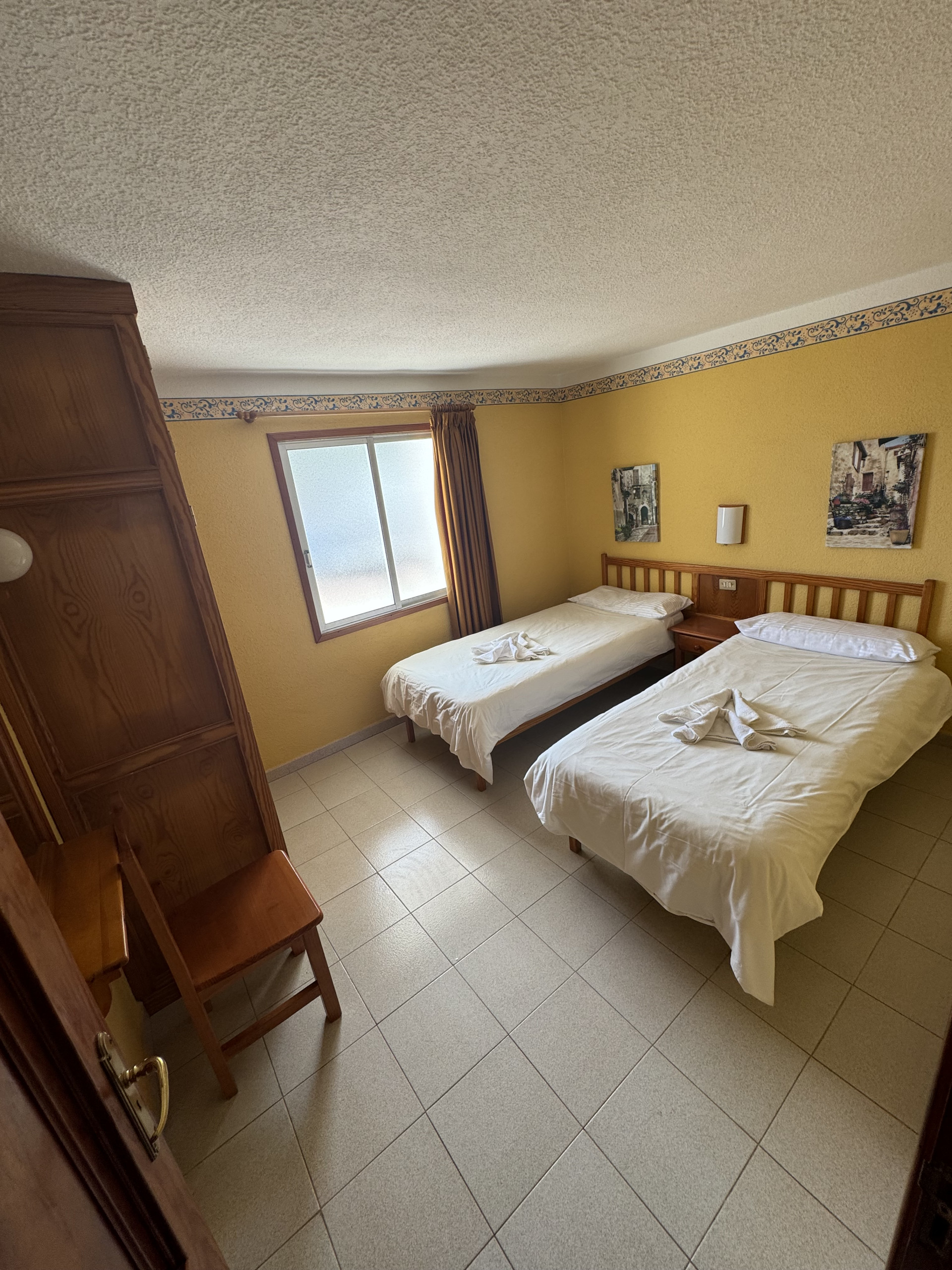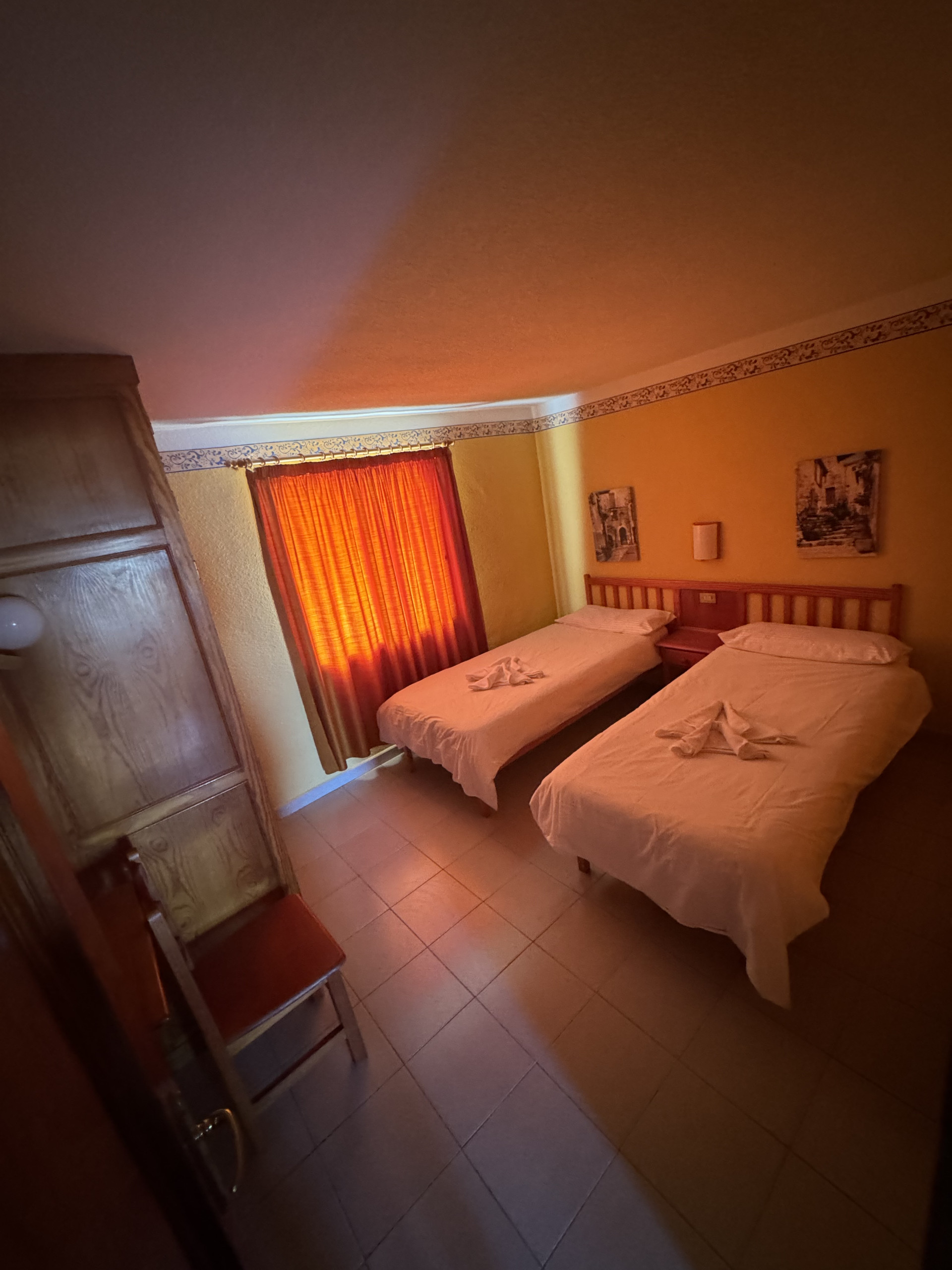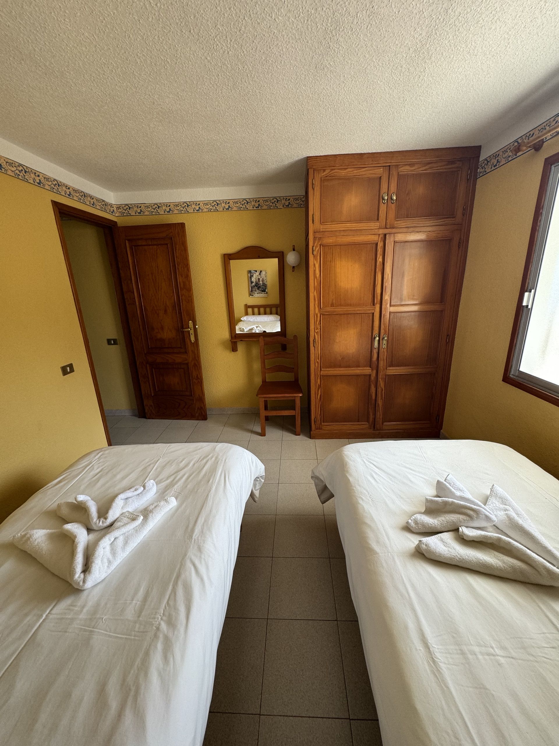 This apartment is located on the first floor of our property and features two single beds, a small fully equipped kitchen, and a private bathroom, all within a cozy and comfortable atmosphere.