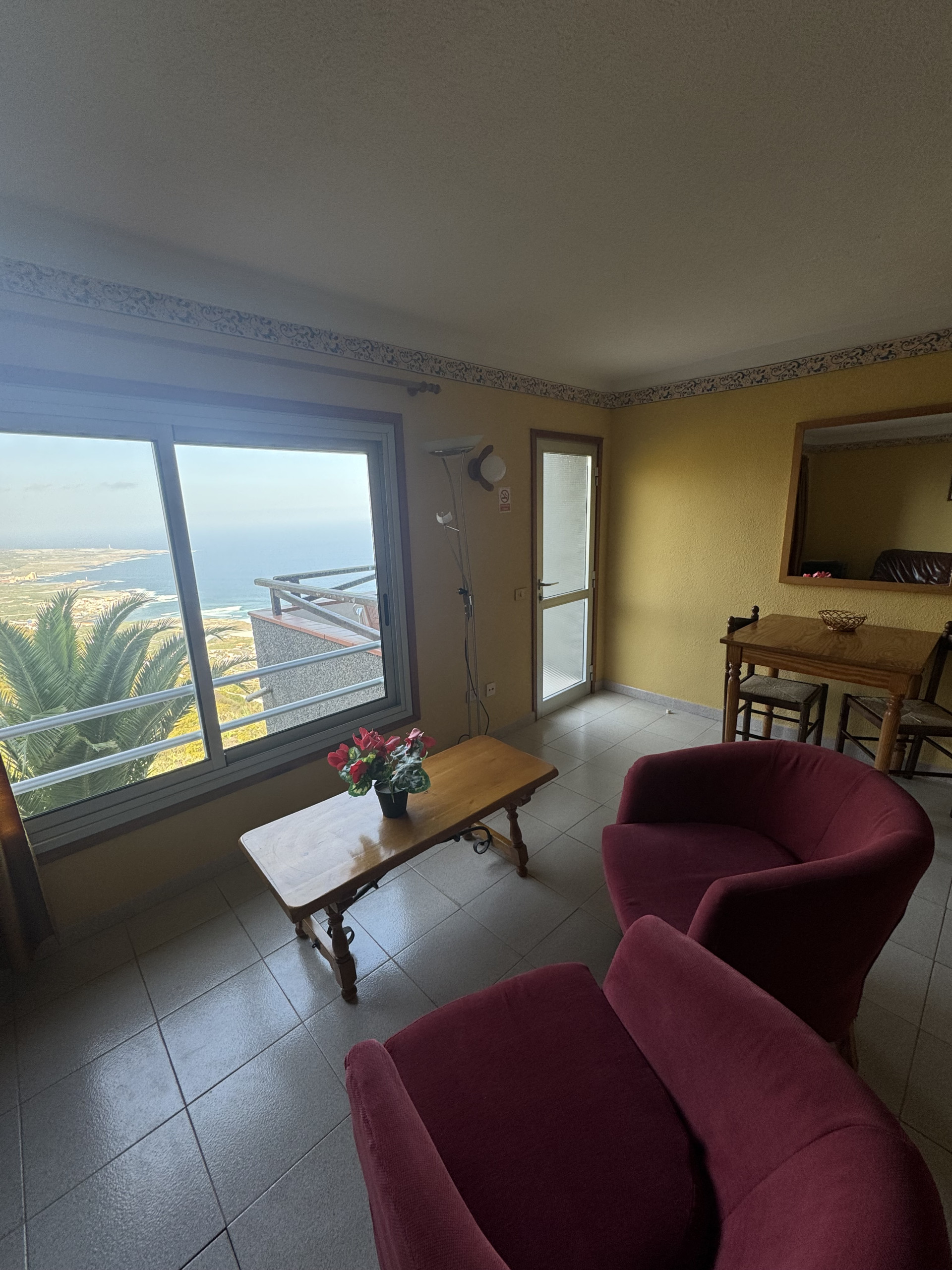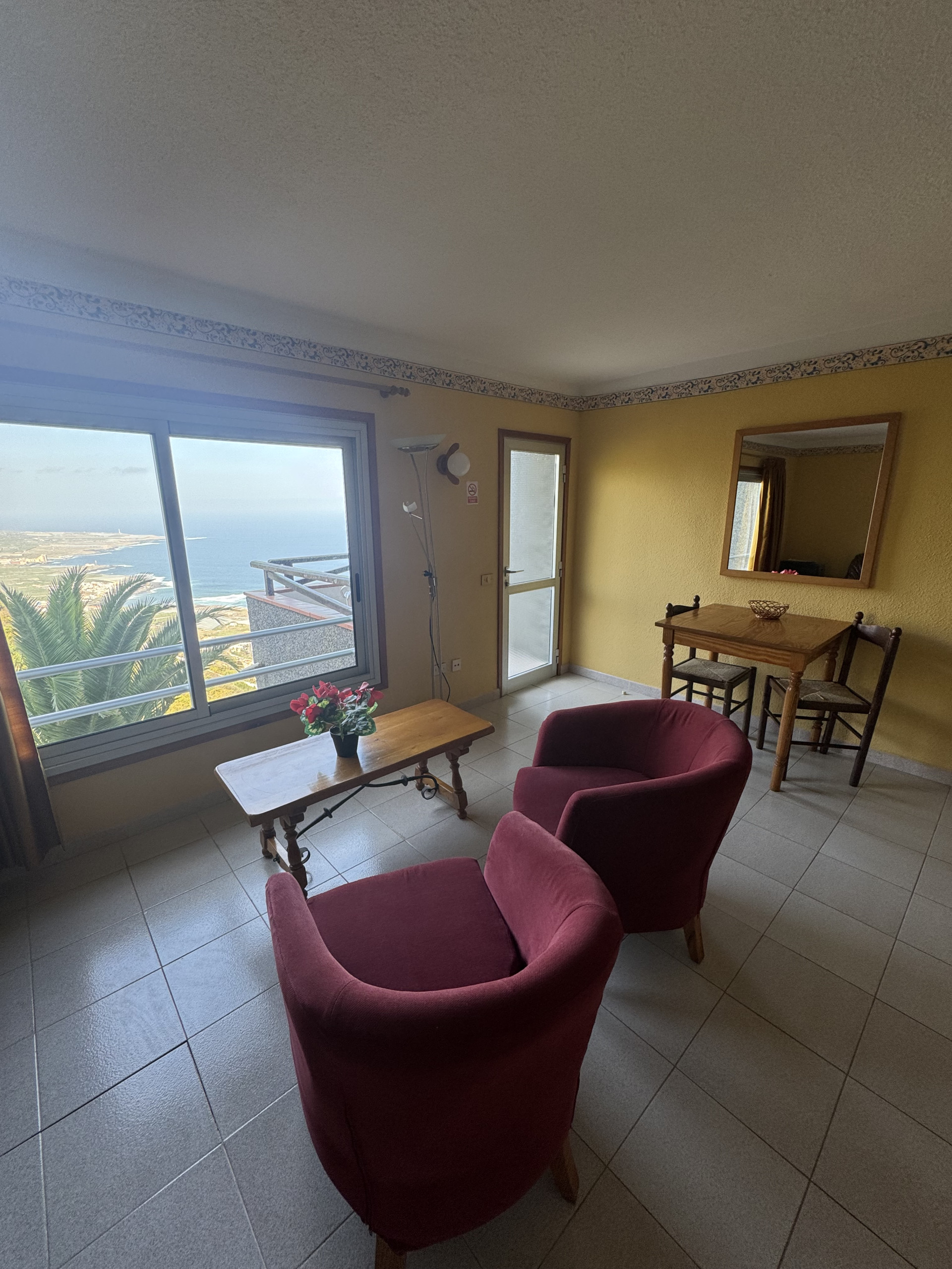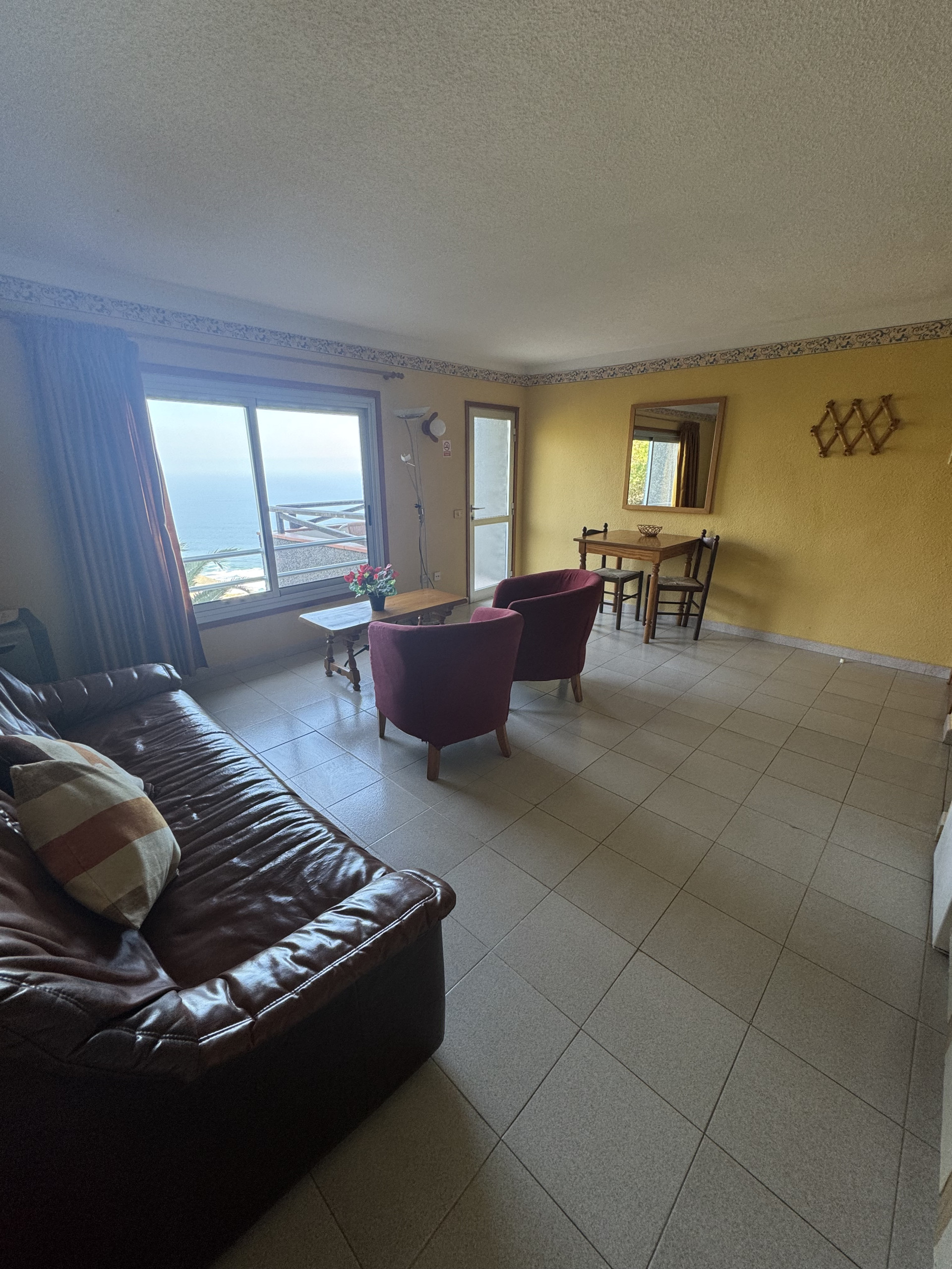 Enjoy the peace and beauty of the sea views in our double apartment with a side view of the ocean and the mountains. The panoramic windows offer a wonderful view of the mountains and the coastline to the west, allowing you to relax in a natural and serene setting.