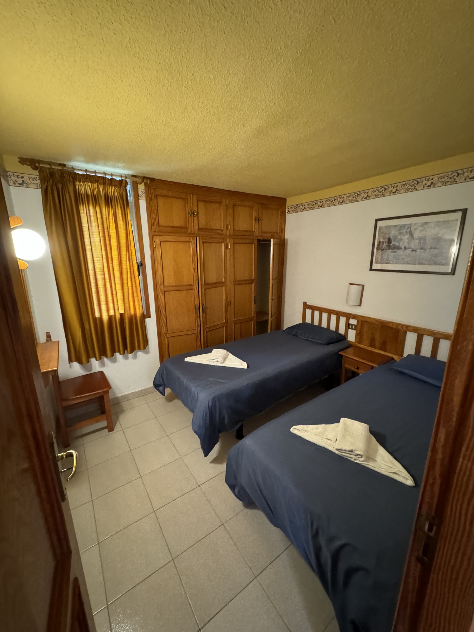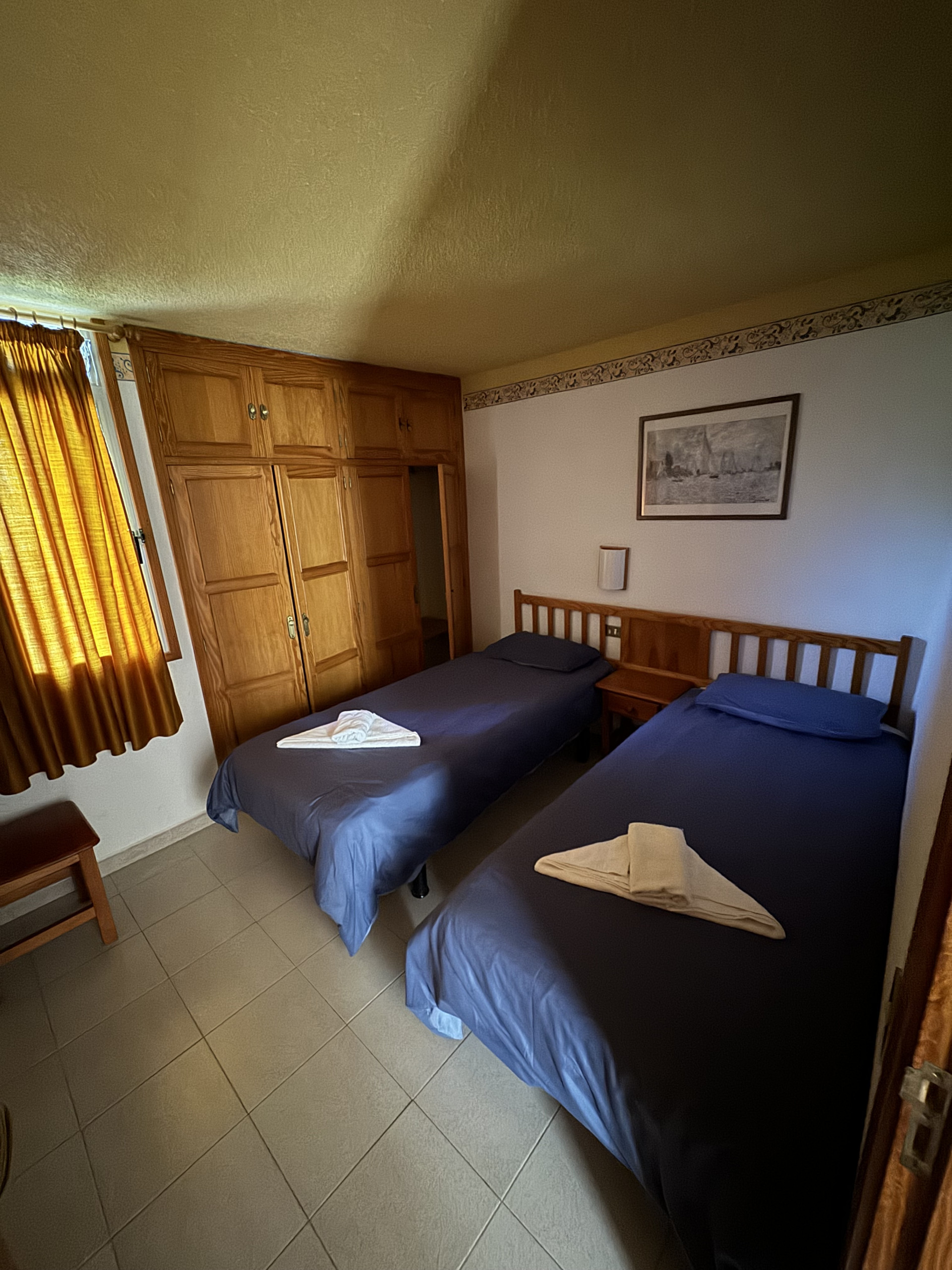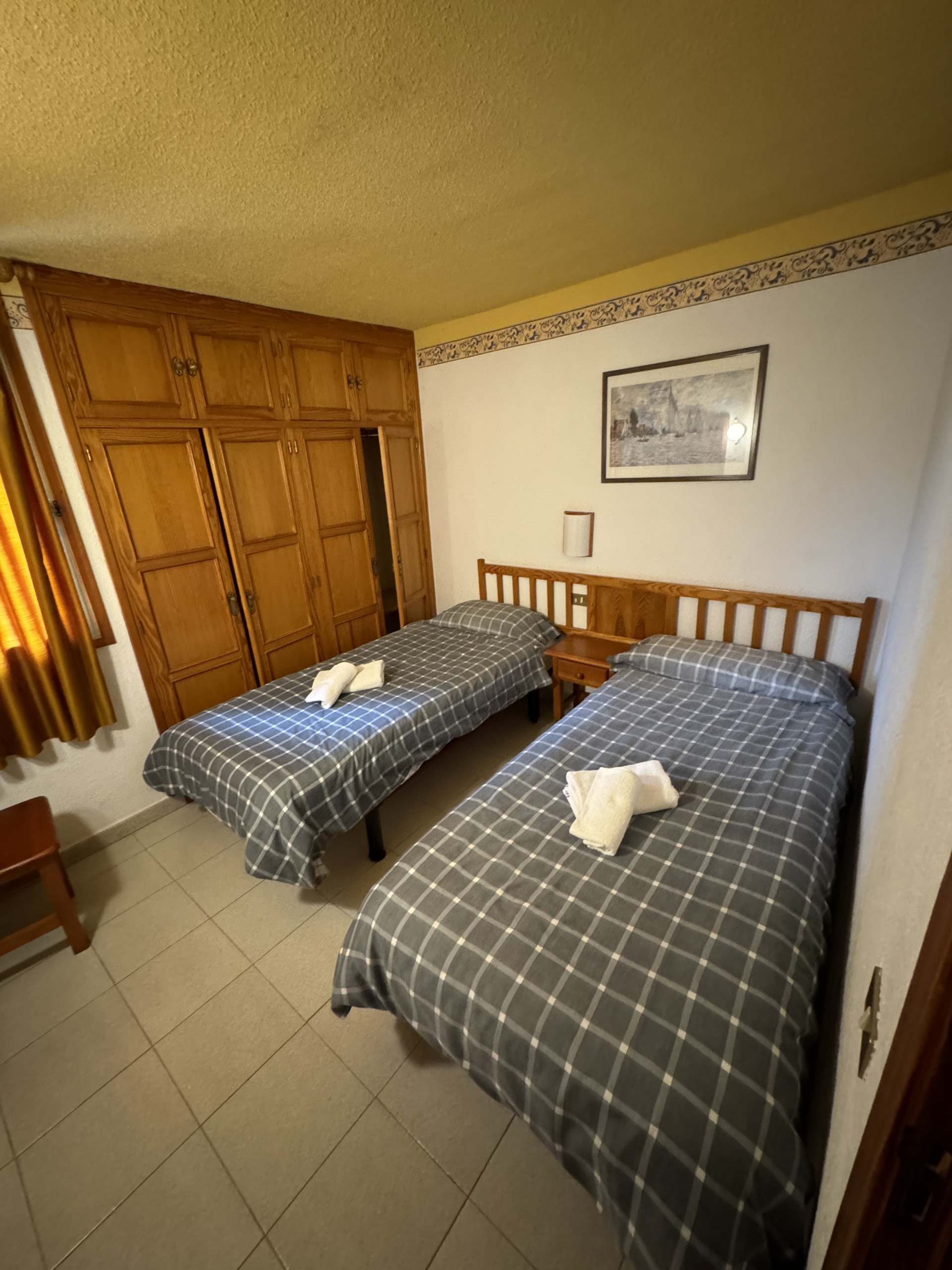 This apartment is located on level -2 of our building and features two bedrooms, each with two single beds, a sofa in the living room, a small fully equipped kitchen, and a private bathroom, all in a cozy and comfortable setting.