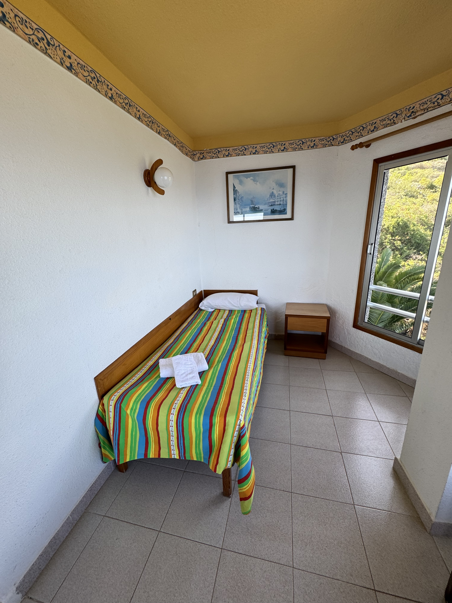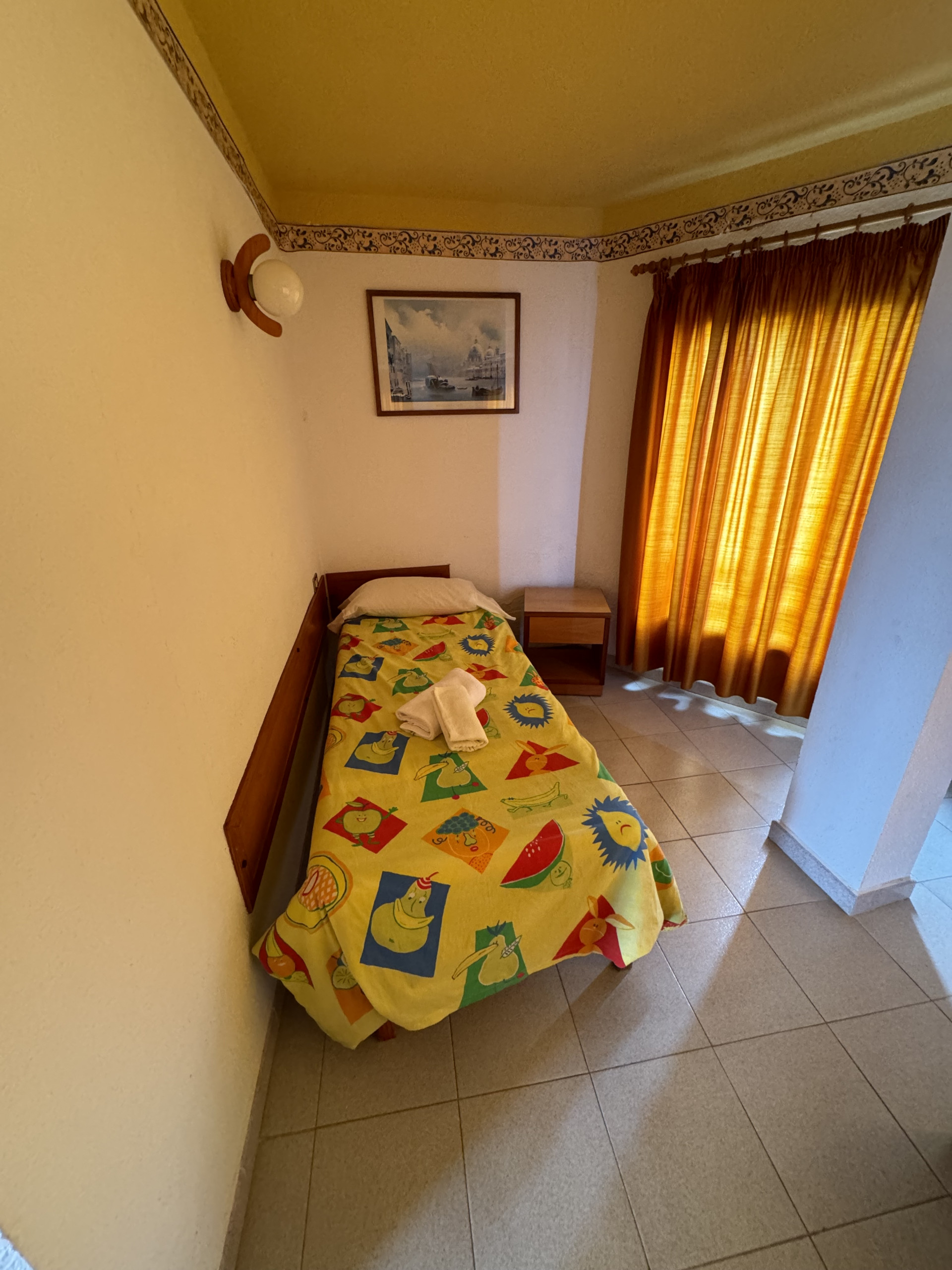 This apartment is located on the ground floor of our property and features three single beds and a crib, a small fully equipped kitchen, and a private bathroom, all within a cozy and comfortable atmosphere.