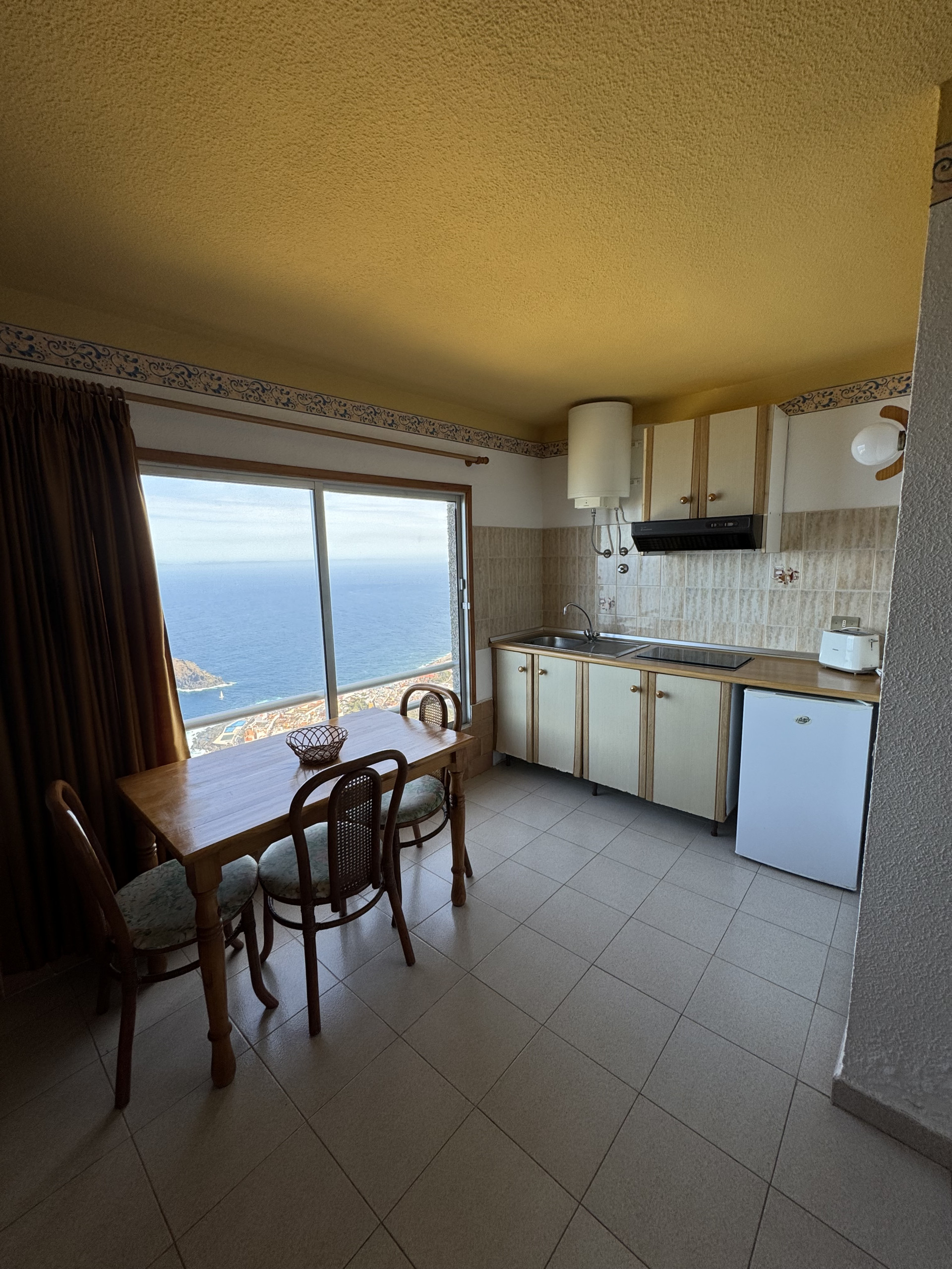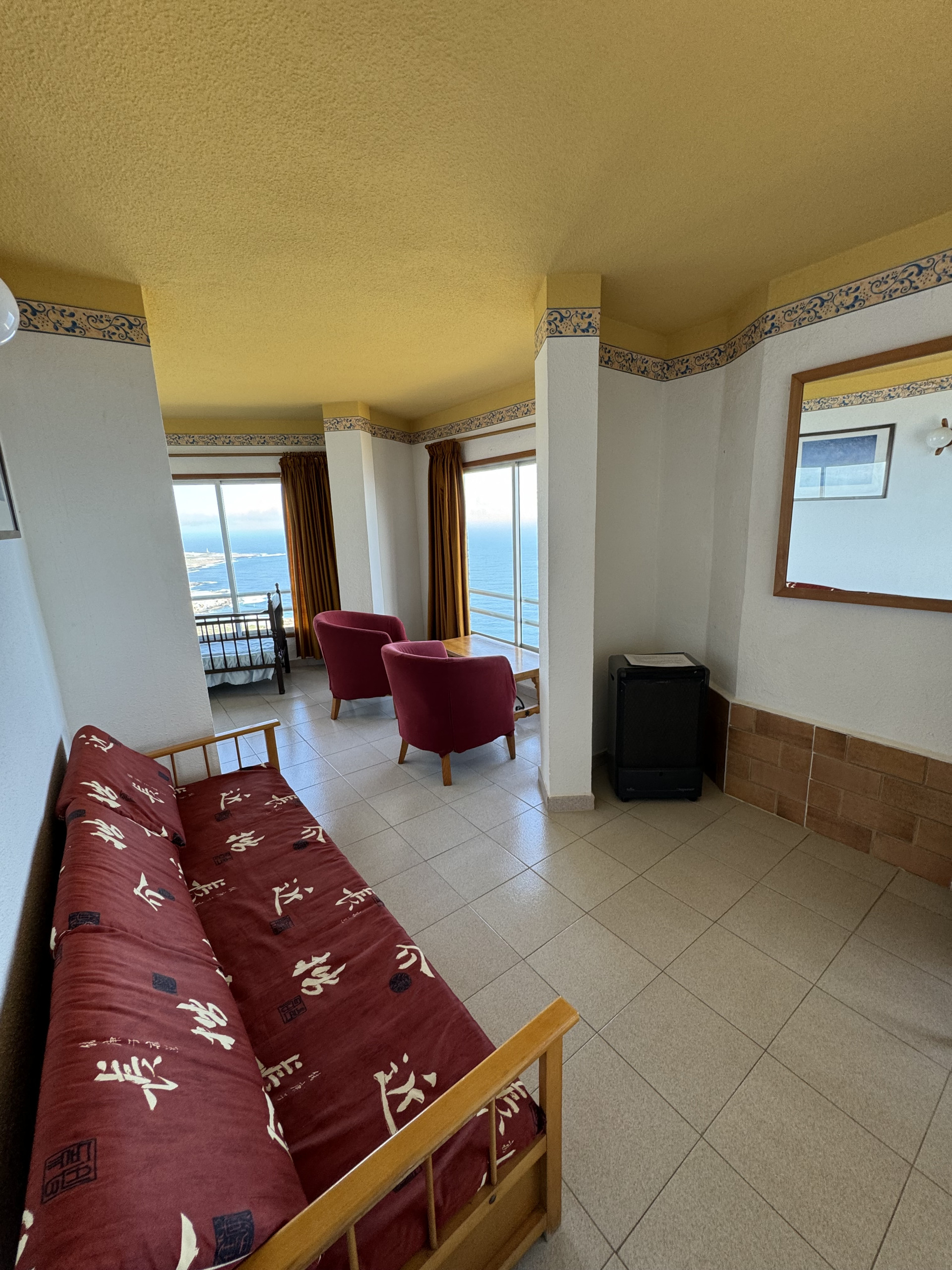 Enjoy the peace and beauty of the sea in our family apartment with a front-facing ocean view. Panoramic windows offer wonderful views of the coastline and our gardens during the day, allowing you to enjoy a natural and serene environment.