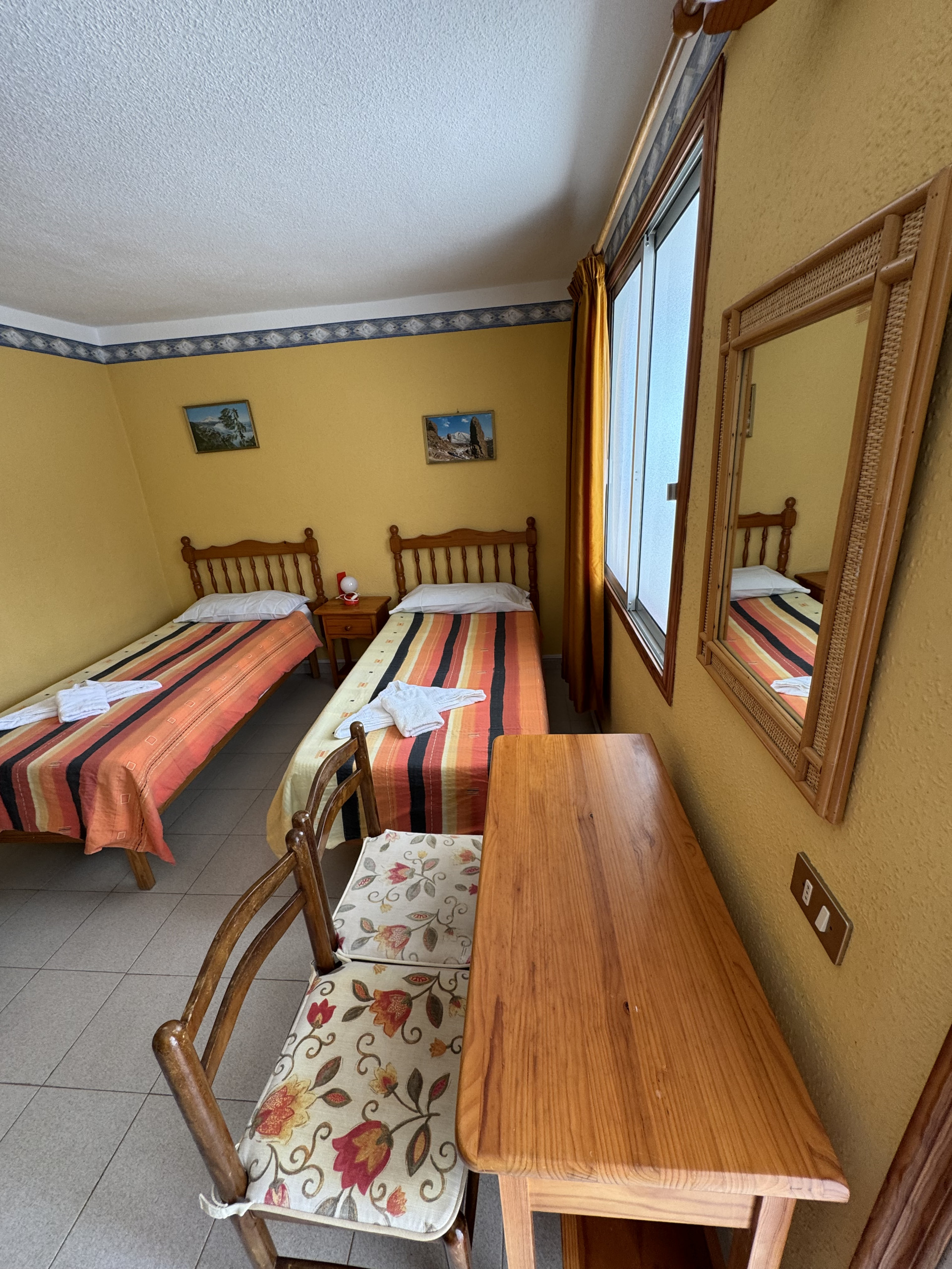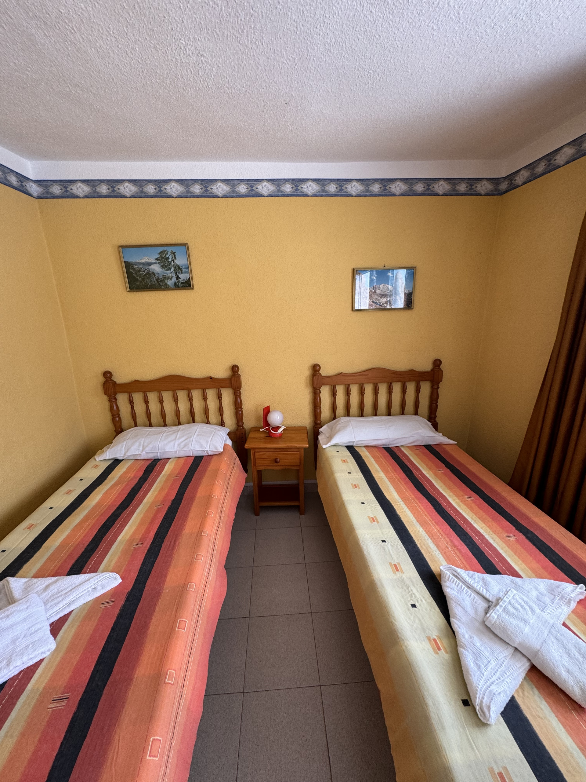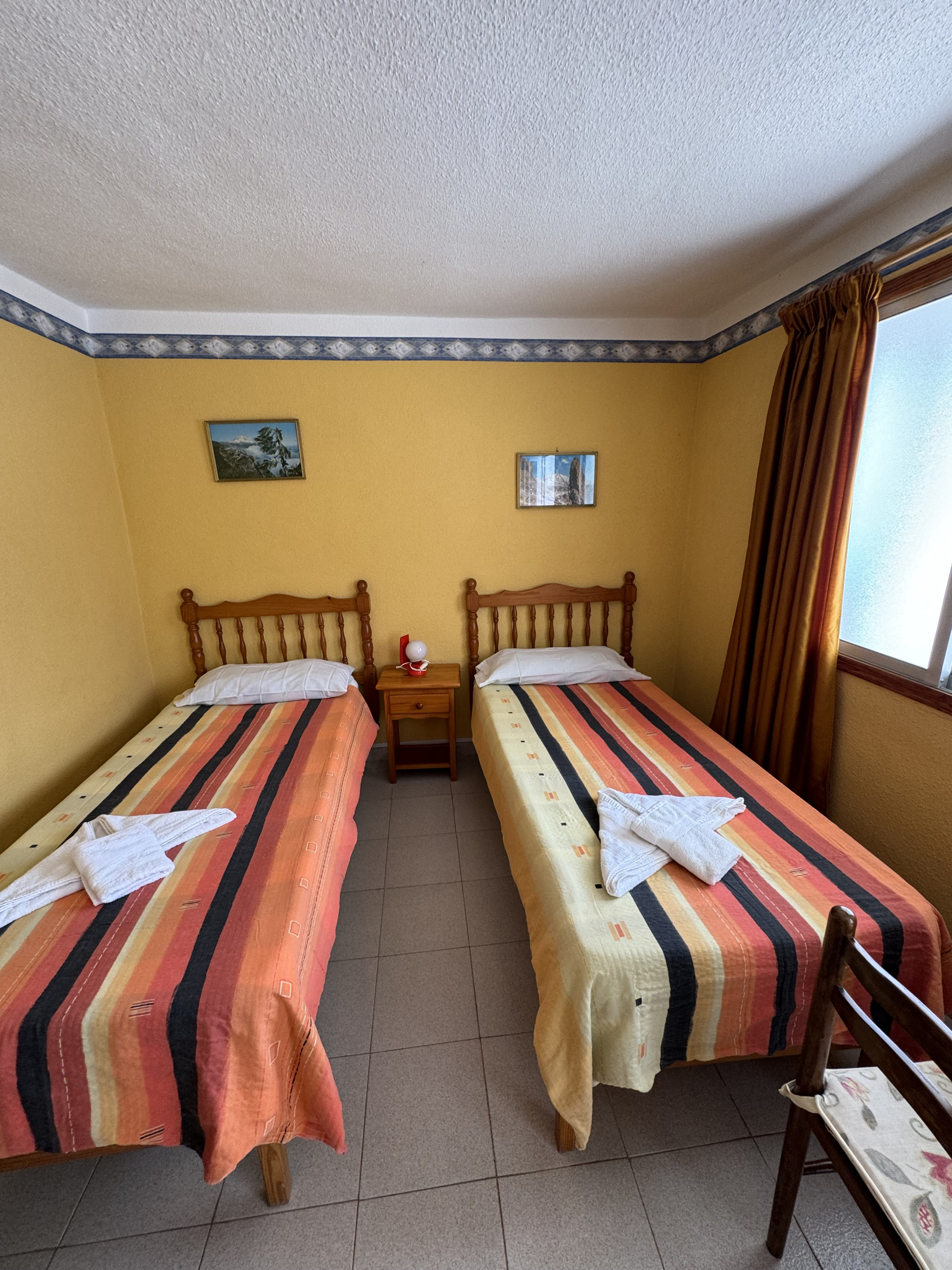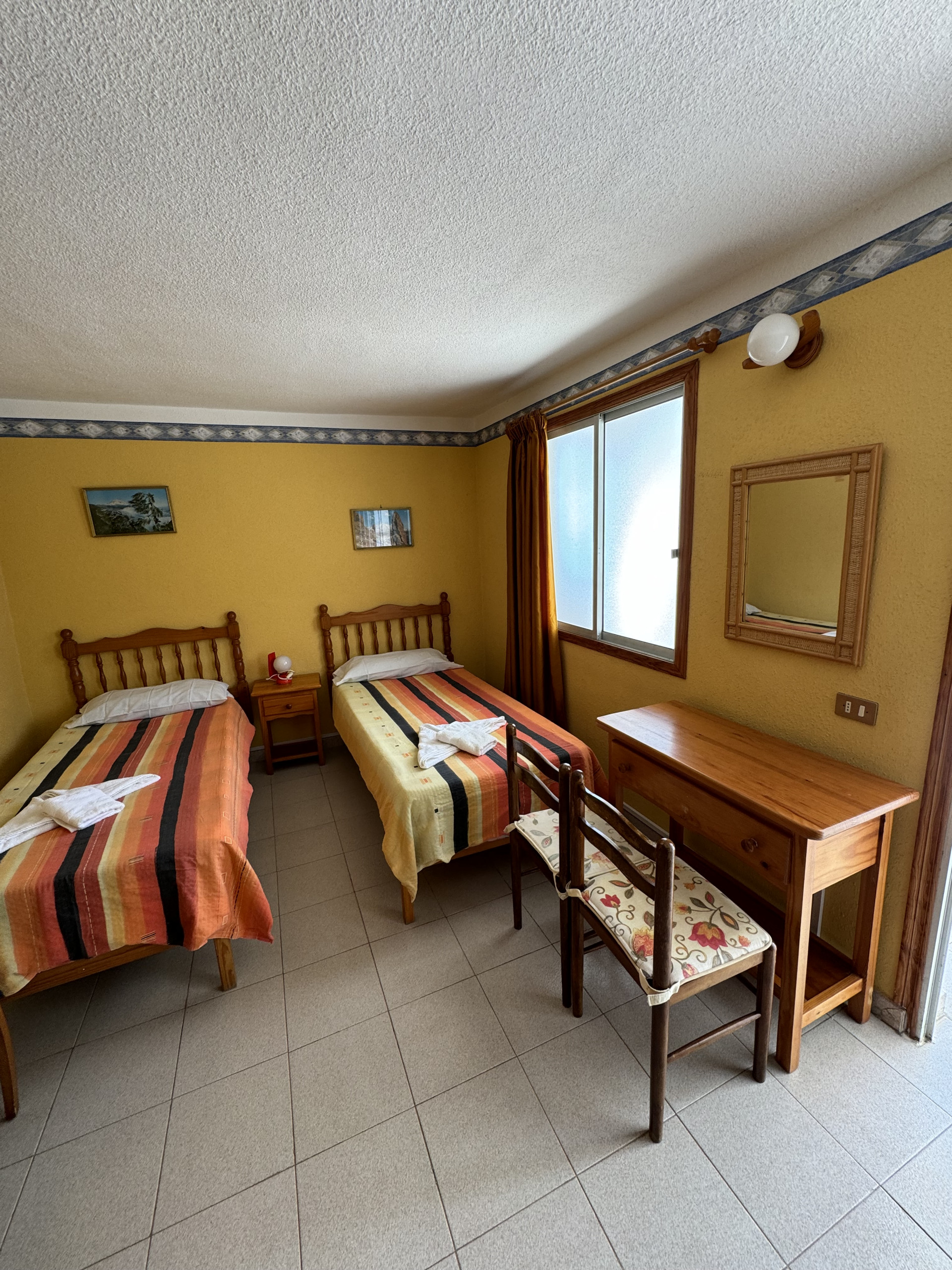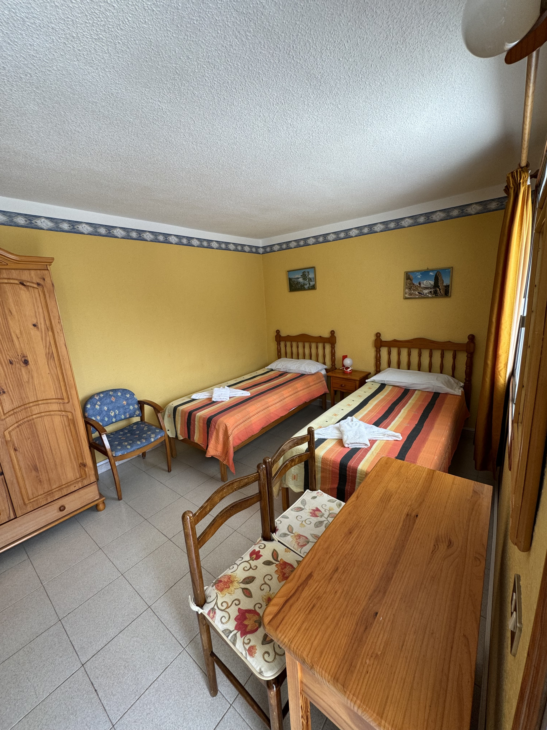 This apartment is located on the first floor of our property and features two single beds, a small fully equipped kitchen, and a private bathroom, all within a cozy and comfortable atmosphere.